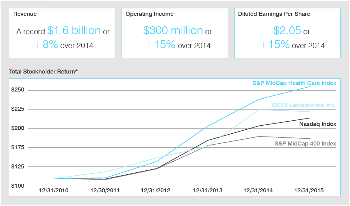 It was an exciting and busy 2015 for all of us at IDEXX. During the year, we stayed true to our core values and extended our track record of organic growth and sound financial performance through disciplined product innovation and strategic geographic expansion.