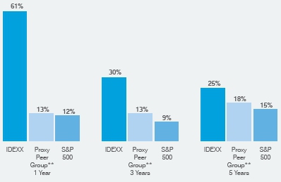 Our consistent strategic focus and strong execution, through a growing group of over 7,000 highly committed and talented IDEXX employees, has delivered exceptional returns for our stockholders over time, reflected in the 22% compound average annual growth of our stock over the past 15 years, an accomplishment matched by few other members of the S&P 500.
