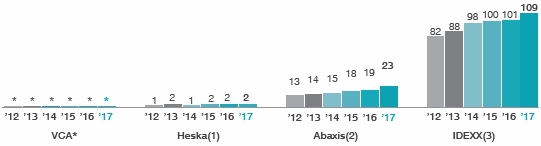 Some Recent CAG Product Innovations Catalyst One Chemistry Analyzer – Delivers real-time results from a blood sample drawn during patient visit. IDEXX SDMA Test – Detecting the renal biomarker SDMA helps veterinarians identify kidney disease, a major pet health concern, sooner. With earlier detection, veterinarians have more options to diagnose, treat and manage this disease. We believe our proprietary IDEXX SDMA Test, which is included in our reference laboratories’ routine chemistry panels, highly differentiates IDEXX’s diagnostic offering, contributing approximately 2% to the 2017 revenue growth of our reference laboratory business. Catalyst® SDMA Test – Enables real-time IDEXX SDMA testing for veterinarians’ patients. Launched in North America in January 2018, we expect to expand the commercial rollout outside of North America during the remainder of 2018. SediVue Dx Urine Sediment Analyzer – Automates urinalysis, a traditionally laborious and variable process, while expanding its clinical value by finding more underlying disease and finding it earlier. The SediVue Dx analyzer uses proprietary image-processing algorithms similar to facial recognition technology to identify clinically relevant particles found in urine sediment and captures high-contrast digital images that become part of the permanent patient record. By using a growing image bank, now over one million patient samples generated by our SediVue Dx analyzer customers, IDEXX leverages machine learning to continuously improve the algorithms’ ability to identify abnormalities in urine samples. rVetLink® Referral Management Solution – Comprehensive referral management solution for specialty care hospitals and their referring veterinarians. Added to our veterinary software portfolio in June 2017, rVetLink helps streamline the veterinary clinic-specialty hospital referral process and enables seamless medical record sharing, strengthening our relationships with the specialty/referral hospital segment of the veterinary market. |