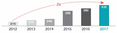 In 2017, we expanded our U.S. field organization by an additional 12% to further deepen our customer presence. Since the end of 2012, our U.S. CAG field-based professional staffing has grown by more than 100%.