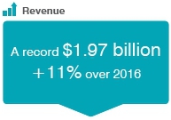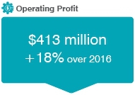 The enduring growth of our recurring revenue streams – supported by our continued focus on investing to grow our attractive, core businesses enabled us to improve our operating margin in 2017, as compared to 2016, by 130 basis points (or 140 basis points of constant currency operating margin improvement) and experience a year-over-year EPS growth in 2017 of approximately 20% (or 21% comparable constant currency EPS growth).4 In addition, in 2017 we generated $373 million in operating cash flow and $299 million of free cash flow, representing 114% of net income, after supporting the growth needs of the business in R&D and capital investment, while allowing for the allocation of capital to share repurchases.5 Our 2017 performance is at the high end of our long-term financial goals, as reflected in our long-term financial potential model:6