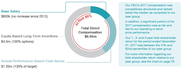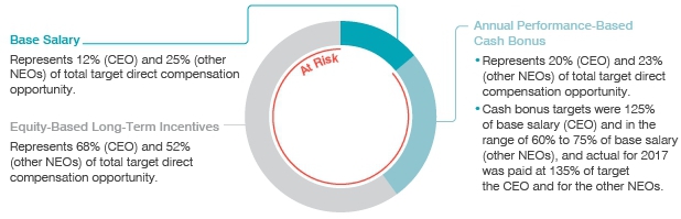 Align pay with our performance by having 80% of 2017 target total direct compensation for our NEOs consist of performance-based compensation
